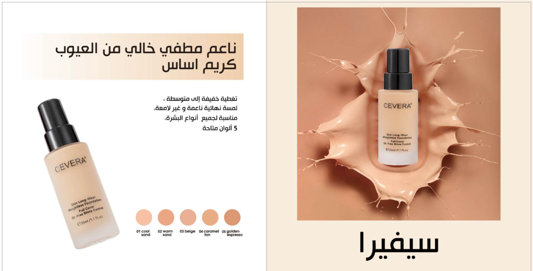 تغطية خفيفة إلى متوسطة ، لمسة نهائية ناعمة و غير لامعة، مناسبة لجميع أنواع البشرة، 5 ألوان متاحة